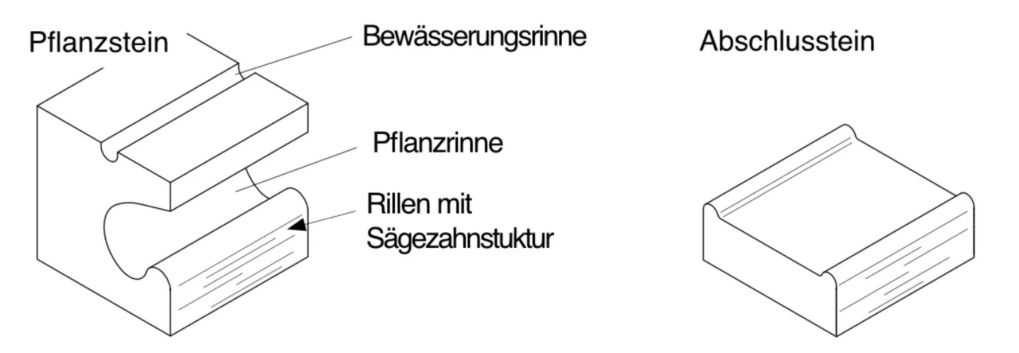 - Bewässerung: Leitungen sind im Stein geschützt, nicht von außen zugänglich
